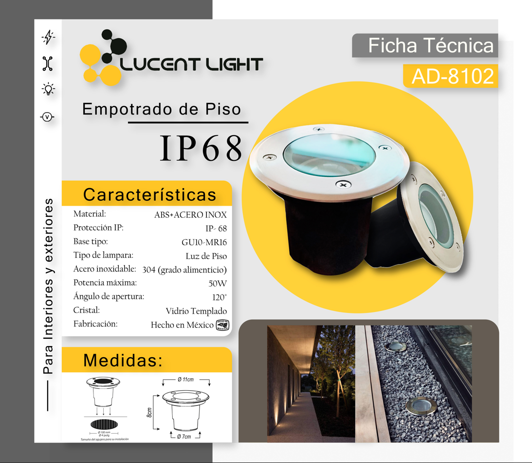 El AD-8102 es la solución ideal para quienes buscan una iluminación eficiente y elegante. Diseñado para integrarse perfectamente al suelo, este sistema de iluminación empotrado ofrece una luz suave y ambiental sin ocupar espacio adicional.